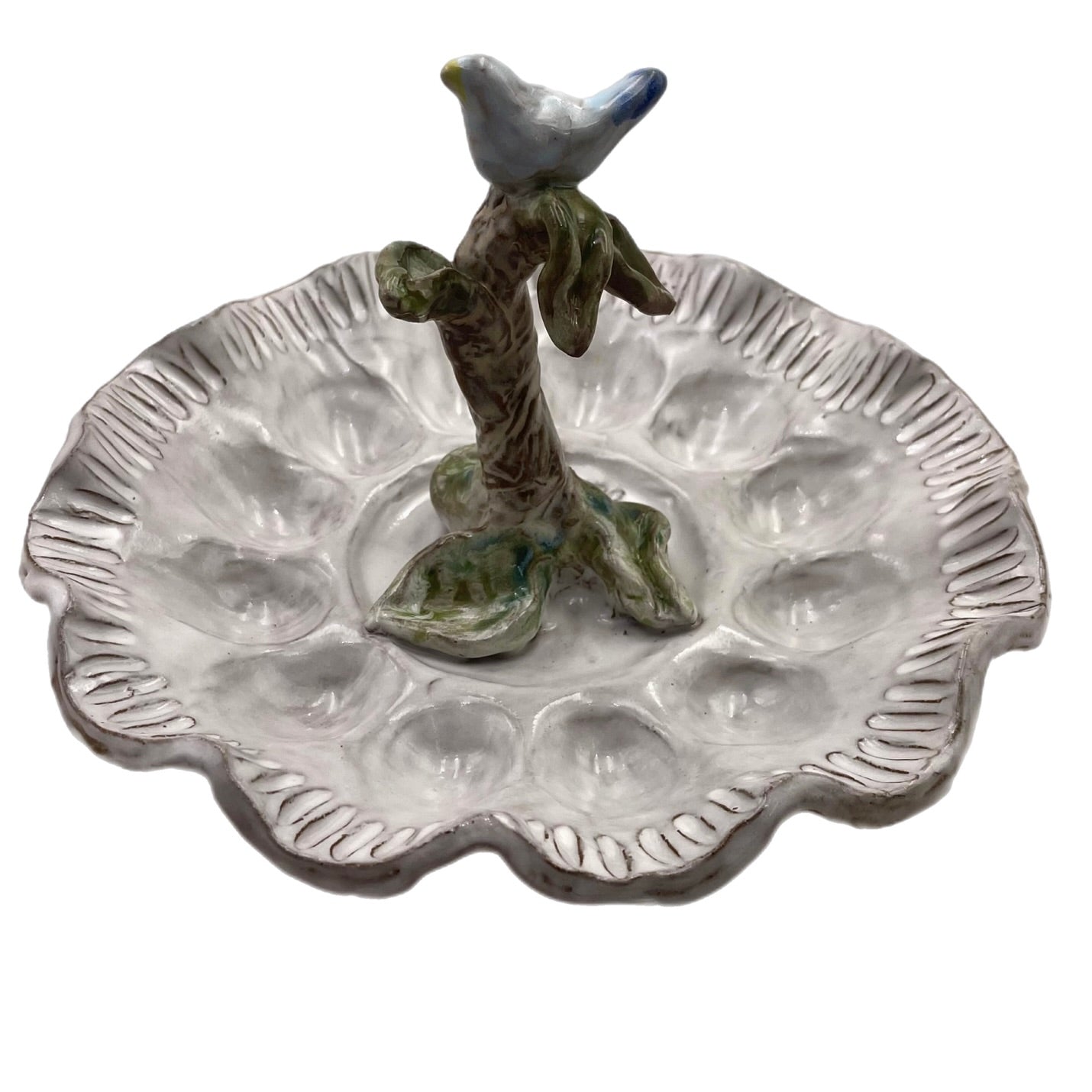 The Birmingham Deviled Egg Tray is the perfect way to serve up your next party dish! This handcrafted tray is designed with a beautiful bird or bunny in the center, adding a touch of elegance to any table. The red bird option is perfect for adding a pop of color, while the bluebird is perfect for a more subdued look. The bunny option is perfect for those who want to add a bit of fun and whimsy to their event! no matter which option you choose, your guests are sure to be impressed with your taste and style! Holds 12 deviled eggs.